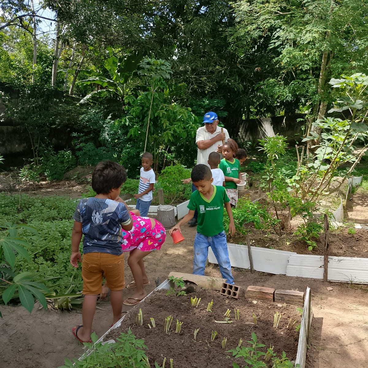 Seit über 20 Jahren unterstützen wir mehrere Schulgärten in Simões Filho und Salvador. Hier lernen Kinder schon ab dem Grundschulalter, wie faszinierend Natur sein kann. Und außerdem sind die Früchte und das Gemüse aus dem Garten eine Bereicherung für die Schulspeisung.