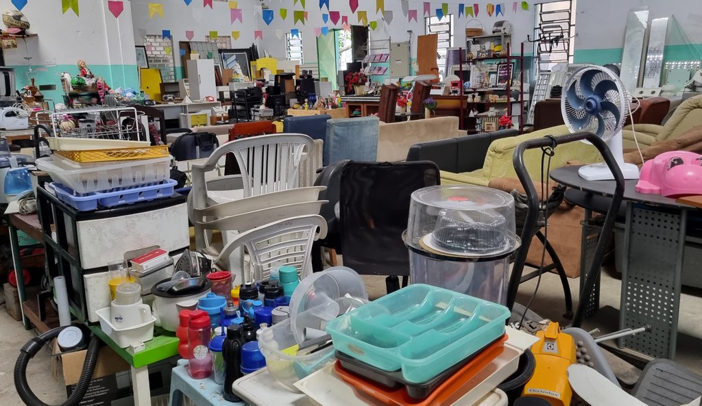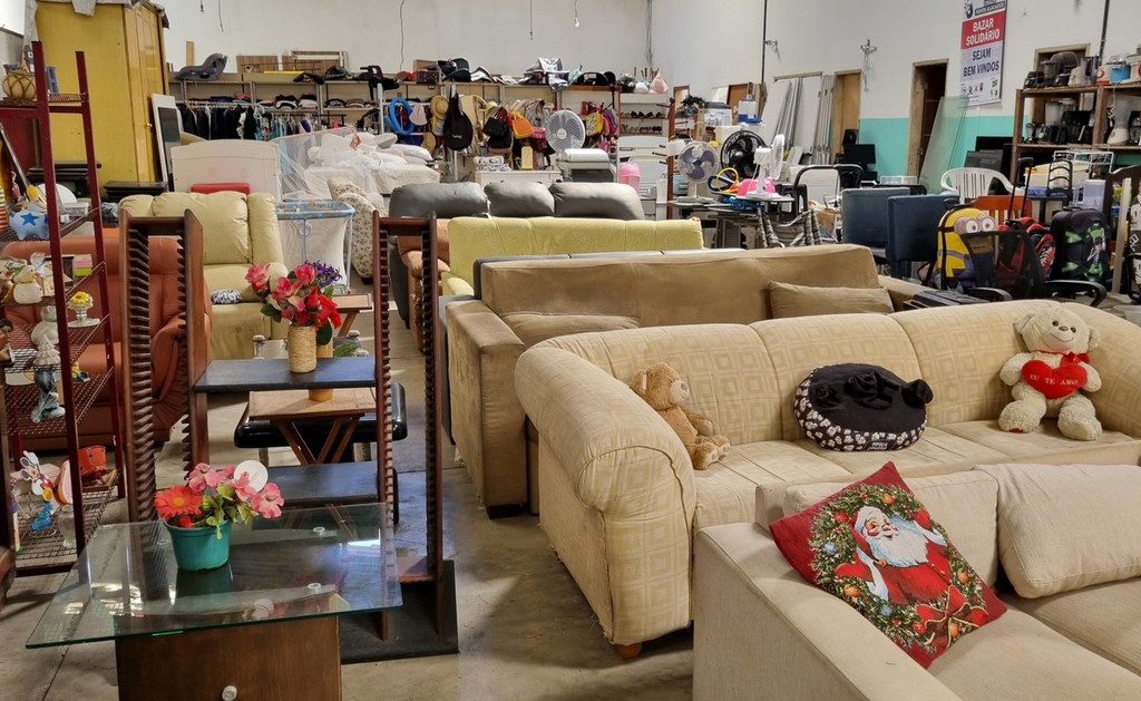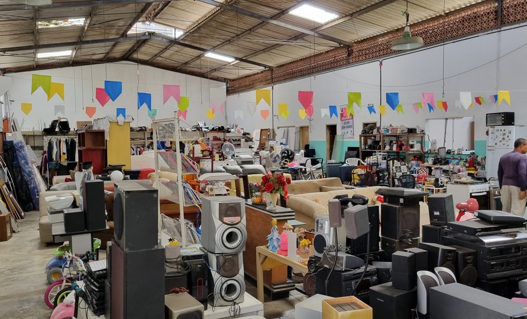 Sales take place in a 500-square-meter hall that originally housed the CEPRIMA, a former textile factory. This hall was unused for many years and was converted into the Emaús Center in 2012. Items collected during the week are cleaned, repaired, and priced. The bazar takes place every Saturday from 8 to 1 p.m.
