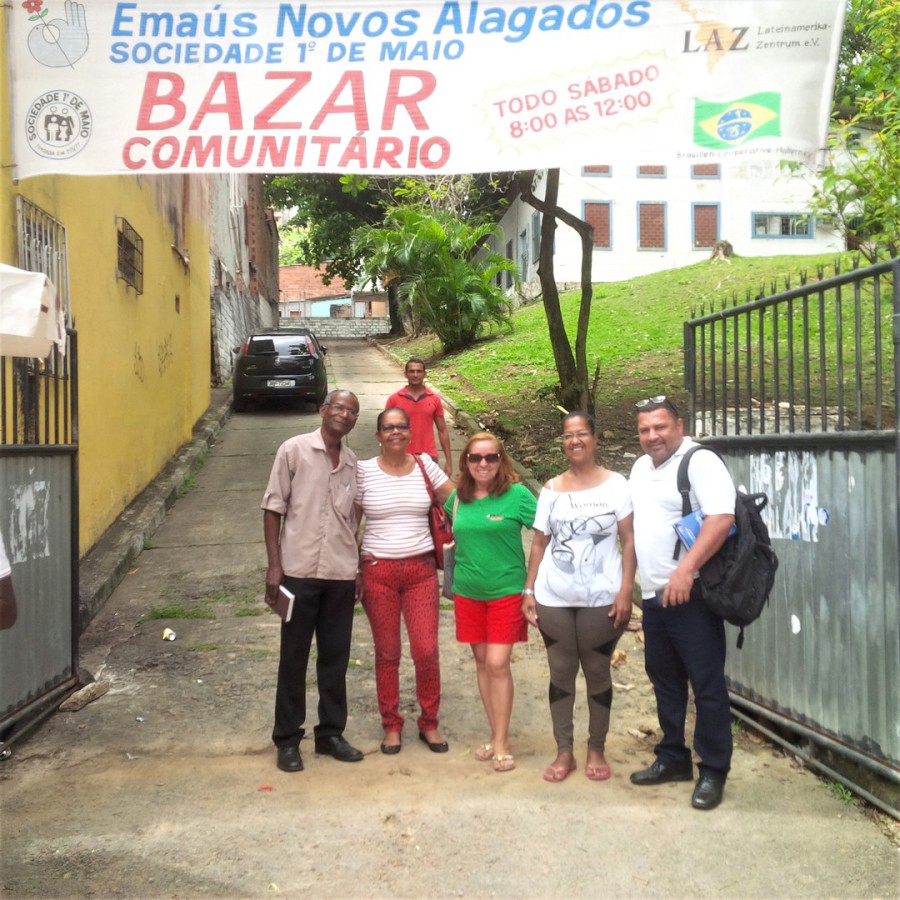 Emaús Novos Alagados wurde 2012 gegründet, um mehrere schon seit vielen Jahren bestehende soziale Einrichtungen in der Favela zu unterstützen und finanziell abzusichern. Die Companheiros von Emaús sind hier aufgewachsen und engagieren sich seit Mitte der 70er Jahre für die Belange ihrer Mitmenschen. Ihre Arbeit hat die Favela in ihrer Entwicklung entscheidend geprägt, aber das ist ein eigenes Kapitel. Die wichtigste soziale Einrichtung in Novos Alagados ist das Jugendzentrum Cluberé. Und Emaús ist im Prinzip der Trägerverein für den Cluberê und die weiteren soziale Projekte. Als Quelle der Finanzierung dient eine Kreislaufwirtschaft und der Verkauf von Second-Hand-Ware. Ein vergleichbares Projekt hat die Brasilien-Cooperative schon in den 90er Jahren in Fortaleza mit aufgebaut. Das Konzept bzw. die Idee dahinter ist denkbar einfach:
